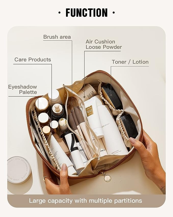 ✅Easier Access Design:The Flat makeup bag that moves as fast as you do! It opens flat so you can see all your makeup at once — and then quickly scrunch things closed when you’re ready to go.