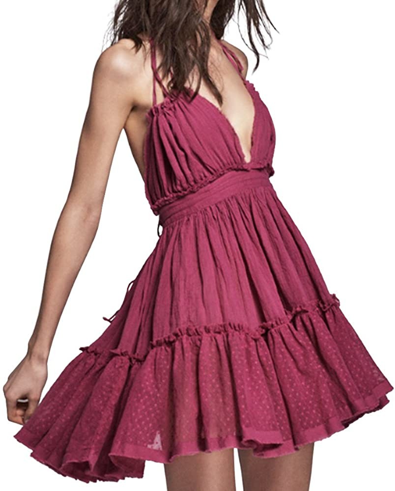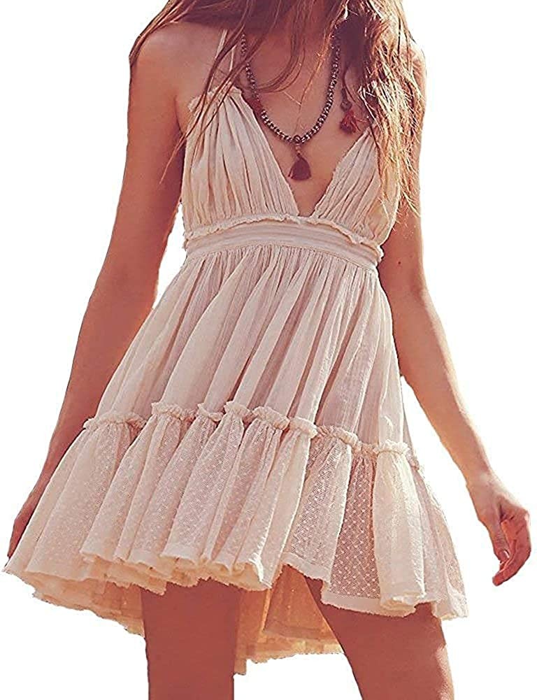 ForeMode Summer Deep V Neck Bohemian Women Mini Short Dress Backless Beach Boho