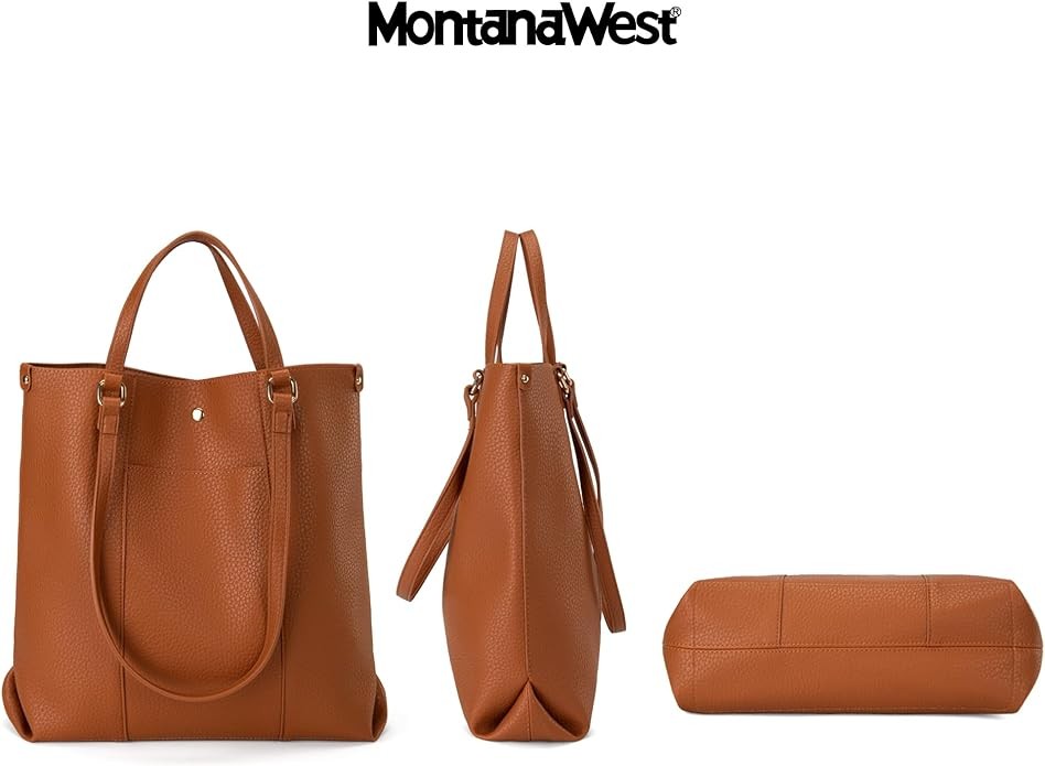 • Montana West vintage large tote bag is crafted out of premium vegan leather, accommodates daily essentials with a spacious and organized space, and a magnetic to secure it shut. The top handle handbag features a double carry design, wear it flexibly on the shoulder with long handles or as a handbag with short handles.