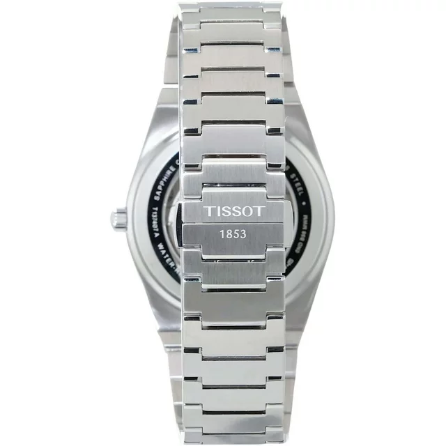 Tissot T1374071104100 PRX men's Powermatic 80 watch features a 40mm wide and 11mm thick solid stainless steel case with a fixed bezel and textured push-pull crown. Tissot T1374071104100 is powered by Swiss Powermatic 80.811 automatic movement with 23 jewels. This stylish watch also features a textured blue dial with white accents silver tone luminous hands and index hour markers along with the up to 80 hours of power reserve function , scratch resistant sapphire crystal and water resistant to 100 meters. Tissot T1374071104100 is equipped with a 12mm wide solid stainless steel interchangeable quick release bracelet with a fold over push button clasp. Tissot T1374071104100 men's PRX blue dial bracelet watch is brand new and comes in an original gift box and is backed by a 2 years store limited warranty.