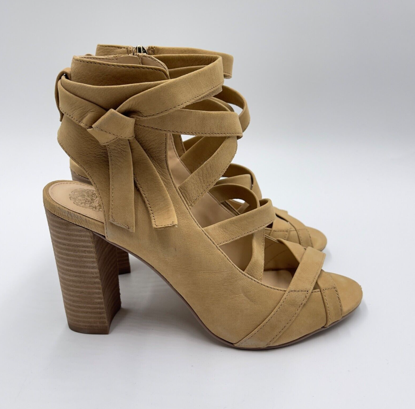Vince Camuto Sammson Sandals Womens Size 10 Tan Strappy Leather Zip